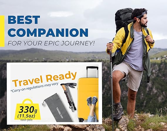 - Lighter Than Your Average Umbrella: Each pole weighs only 11.5 ounces (330g) perfect as an all-day walking stick or for backpacking in high mountains or on your favorite ski trails, or even crossing the stream. The staffs are engineered with 100% air-space grade material used on aircraft and in marine environments, when strength and lighter weights are needed. Whether you are for fishing, hiking, these folding poles are the only trek poles you will ever need